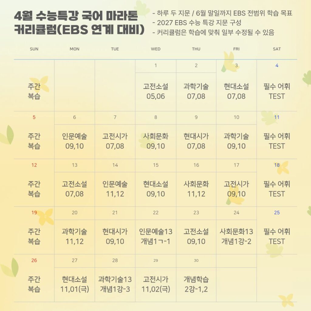 / 4월 EBS 수능특강 국어 마라톤(1일 2지문)- [고3 · 고2 수능 대비]